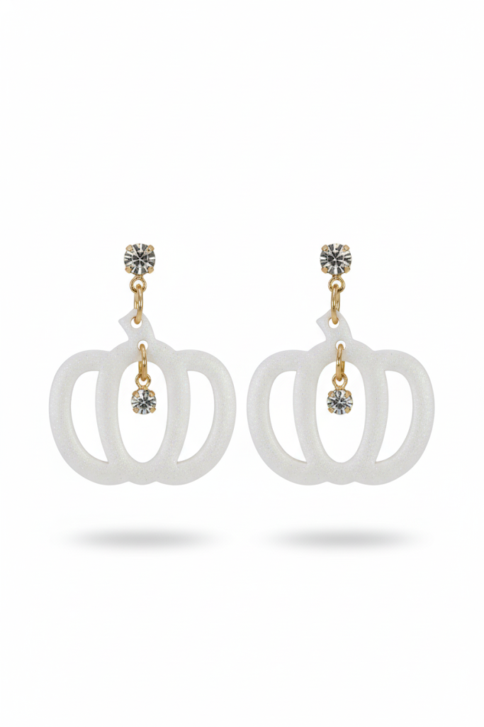 White polymer clay pumpkins with 18k gold findings and cubic zirconia crystals.